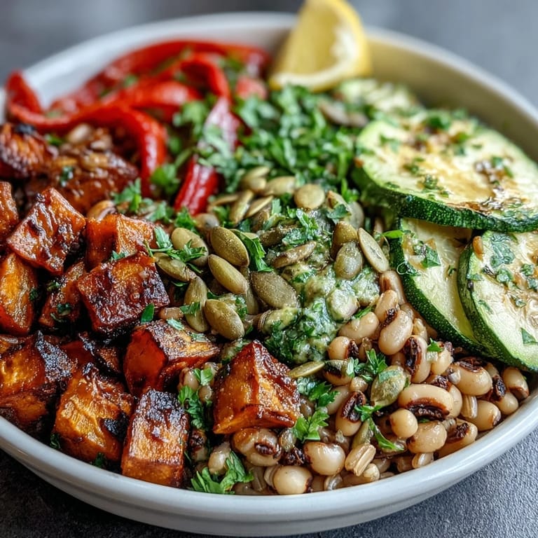 Save There's something about a grain bowl that feels like you're putting together a edible mosaic, each component having its own moment to shine. I discovered black-eyed peas properly while standing in a friend's kitchen in Charleston, watching her grandmother layer them over rice with such care that it seemed almost ceremonial. That bowl changed how I thought about weeknight dinners, turning them from something rushed into something intentional. Now I make variations whenever I need to feel grounded, and this farro version with roasted vegetables became my go-to when I wanted something that felt both nourishing and celebratory.