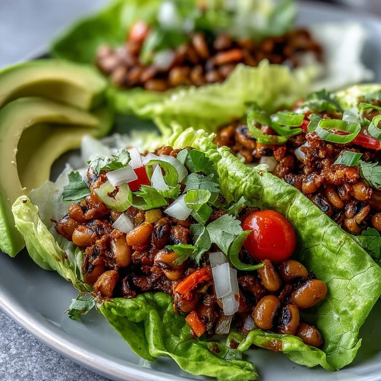 Save My neighbor showed up with a bag of fresh butter lettuce from her garden one summer afternoon, and I was scrambling to figure out what to do with it before it wilted. I'd been craving something light but satisfying, and it hit me: why not use the lettuce as edible vessels? That's when these black-eyed pea wraps came together, turning a simple pantry staple into something that felt both fancy and completely effortless.