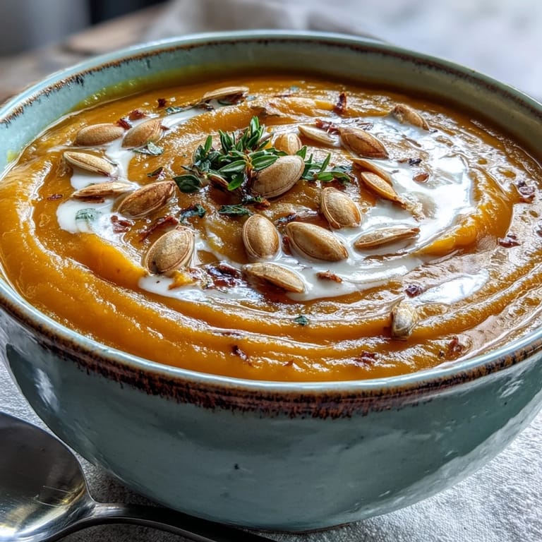 While perfectly satisfying on its own, I've found this soup pairs wonderfully with a simple green salad dressed with a tangy vinaigrette to cut through the soups natural sweetness. For heartier appetites, a slice of rustic bread brushed with olive oil and toasted makes for excellent dipping. When serving at gatherings, consider setting up a toppings bar with coconut cream, toasted pumpkin seeds, fresh herbs, and a little bottle of hot sauce for those who enjoy a hint of heat with their sweetness.