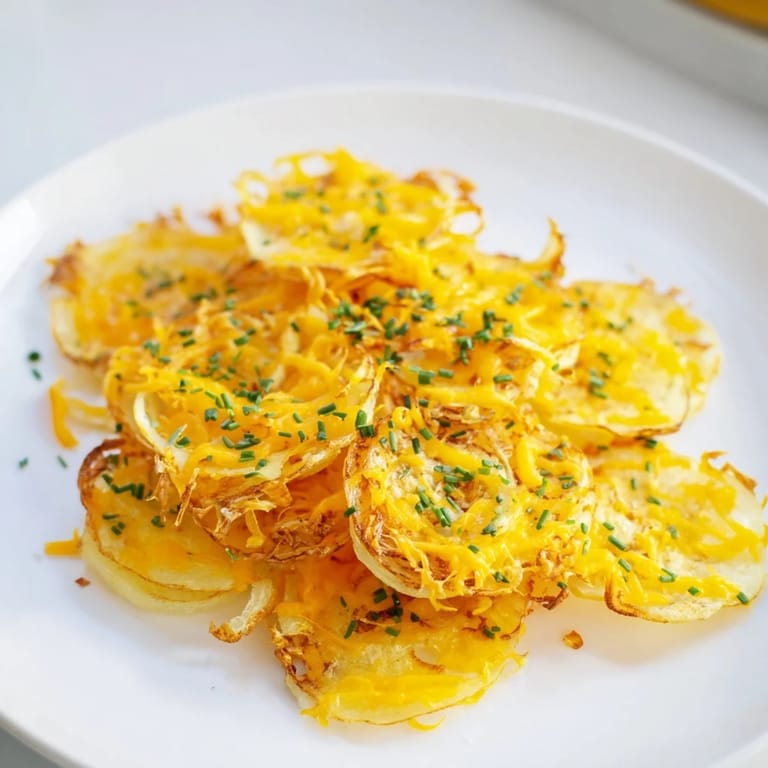 Save One afternoon, I was testing recipes when my mandoline slipped and thin onion rings scattered across my counter. Instead of cursing the mess, I thought: what if I just fried those? That evening, layering them with melted cheese in my air fryer, something magical happened—golden, crispy chips that tasted like elevated junk food. My partner grabbed three in a row without asking, and I knew I'd stumbled onto something worth keeping.
