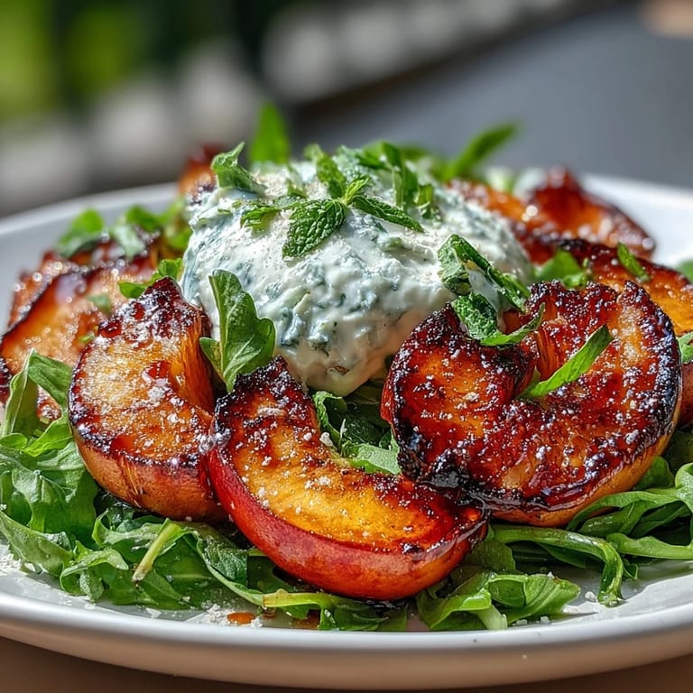 Save Enjoy this effortless yet elegant salad that brings together the seasonal sweetness of grilled peaches with the rich creaminess of burrata, elevated by a delicate honey drizzle and aromatic basil. It's an ideal dish for summer dining, promising both flavor and freshness in every bite.