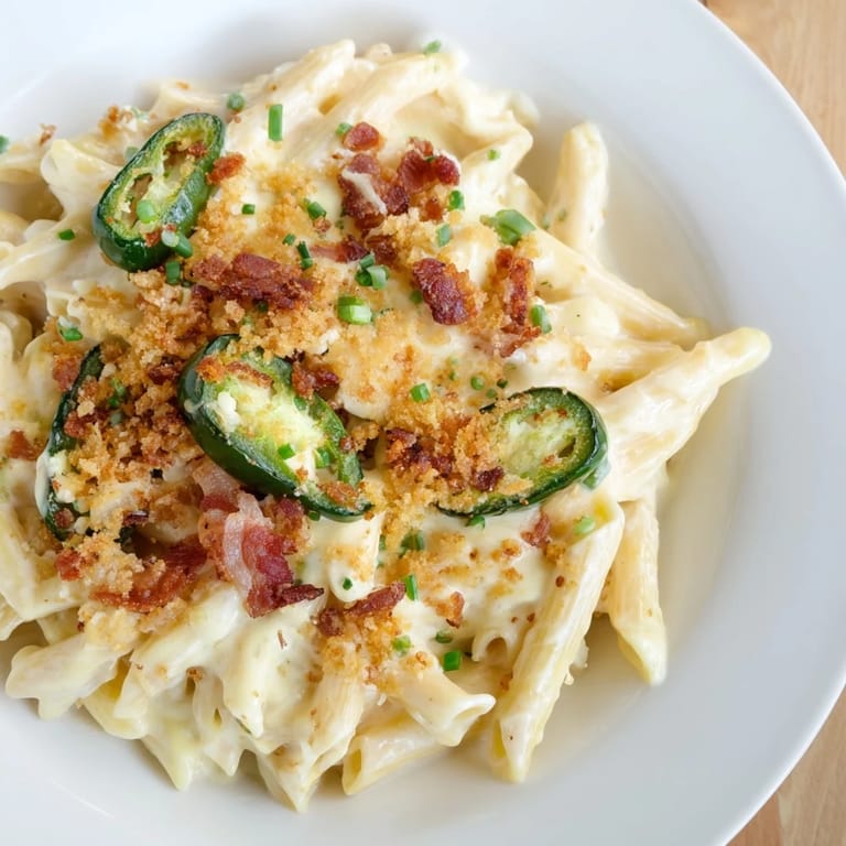 This dish transforms the classic components of jalapeño poppers—spicy peppers, cream cheese, and salty bacon—into a satisfying pasta course. It is an easy yet flavorful way to elevate a standard weeknight dinner into something truly special.