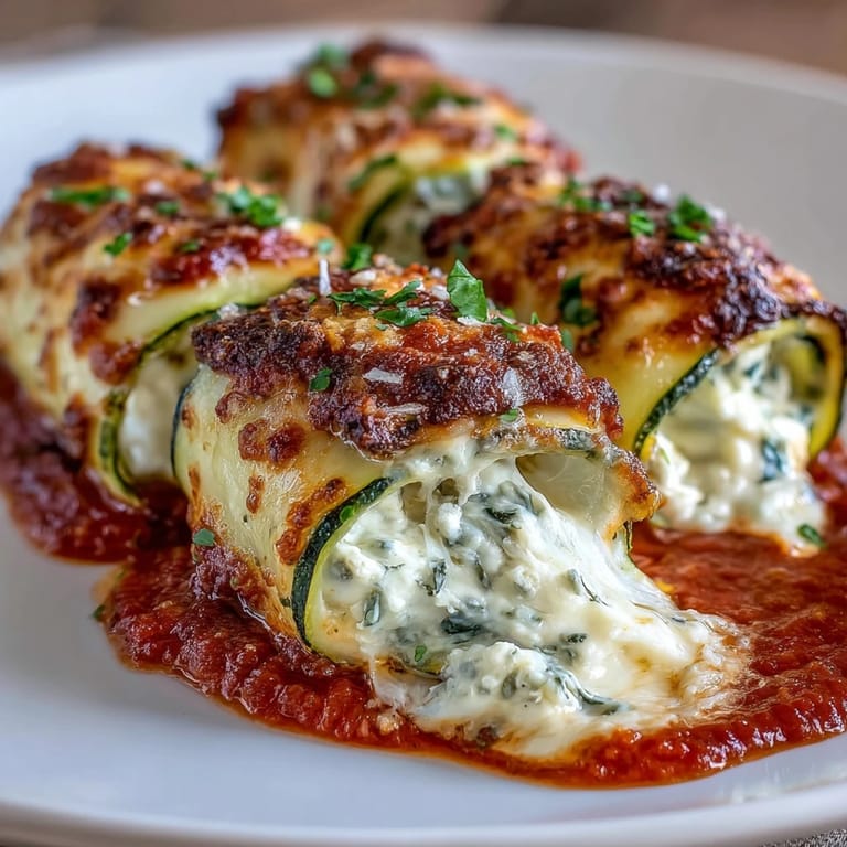 Save My sister called me at work one Tuesday, frustrated that her keto diet felt boring, and I found myself walking her through these zucchini roll-ups over speakerphone while she laughed at my enthusiasm. There's something about rolling tender vegetable strips around creamy cheese that feels both comforting and clever, like you're outsmarting the carb gods without sacrificing flavor. When she sent me a photo of her golden, bubbling baking dish that evening, I realized this wasn't just a workaround recipe—it had genuinely become something we both craved.