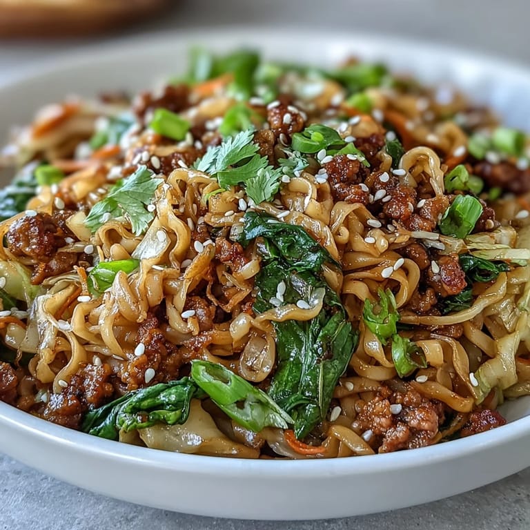 Save The smell hit me first—ginger and garlic sizzling in hot oil, that sharp, sweet aroma that makes you stop mid-step and just inhale. I was trying to recreate the potsticker filling I loved from my favorite dumpling spot, but I had no wrappers and no patience for pleating. So I tossed it all into a bowl with noodles instead, and honestly, it tasted better than I expected. Now it's the dish I make when I want all that savory, sticky comfort without the fuss.