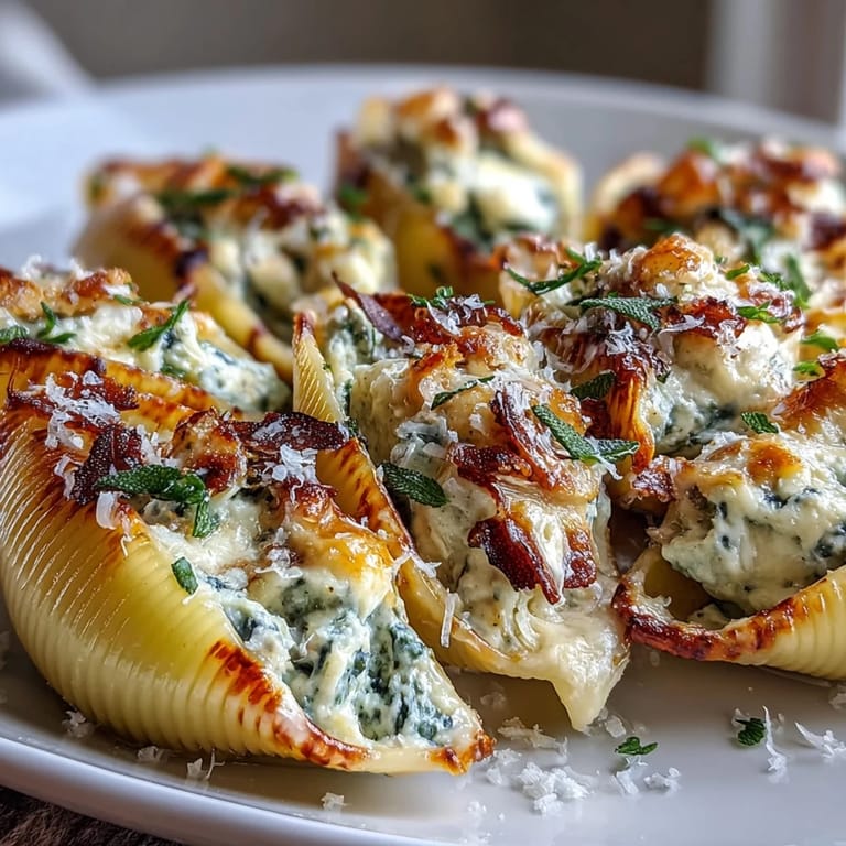 Save The smell of butter browning always makes me pause, no matter how many times I've done it. That moment when it shifts from yellow to golden to nutty is pure alchemy. I was testing this pumpkin and Gouda filling on a rainy October afternoon, and when I poured that brown butter sage Alfredo over the shells, I knew I'd stumbled onto something special. The kitchen smelled like a hug, all warm spice and toasted sage.