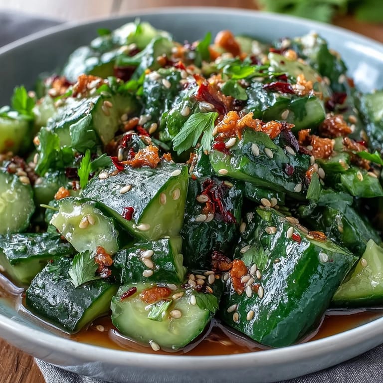 Save No matter how many summers come and go, cucumber season has a way of changing the mood in my kitchen. On the first scorching afternoon I tried smashing cucumbers instead of slicing, each sharp crack made me grin—there’s something satisfying about a little mess. That first attempt, the bright, garlicky aroma caught me off guard and had me eagerly anticipating my first bite. I didn’t expect something so simple to taste so complex. My windows were open, cicadas buzzing, and within minutes, the whole place smelled like sun and spice.