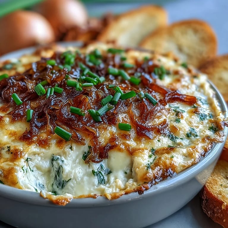 Save The smell of onions turning golden in olive oil always reminds me of lazy Sunday afternoons when I need something impressive but don't want to fuss. I started making this dip after a potluck disaster where my contribution arrived forgotten in the fridge. Now I bake it right before guests arrive, and the smoky, bubbling aroma does half the work for me. It's become my signature move when I want to look like I tried harder than I did.