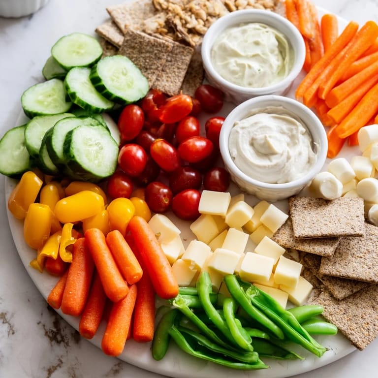 This isn't just a snack board; it's a system for eating better without making it feel like you're being virtuous. You get vegetables, protein, healthy fats, and something crunchy all in one place, and because it looks beautiful and feels intentional, you're more likely to actually sit down and enjoy it instead of standing at the counter shoving things in your face. Every element here serves a purpose, but mostly the purpose is making you happy to be eating.